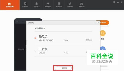 在正常情况下,将处于FastBoot模式下的小米手机与电脑重新多连接几次,此时小米助手将自动检测设备刷机列表,并弹出如图所示的“刷机包”选择界面。