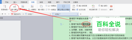 插入脚注 将光标置于需要设置的段落中,点击菜单栏中的“引用”-->"插入脚注",如下图: