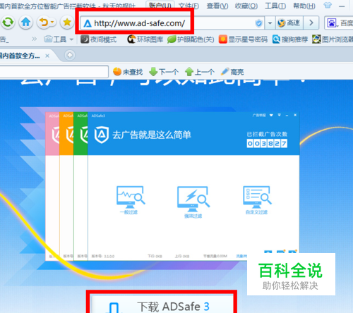直接进入“广告拦截专家”官网首页获取“ADsafe”软件的下载地址。