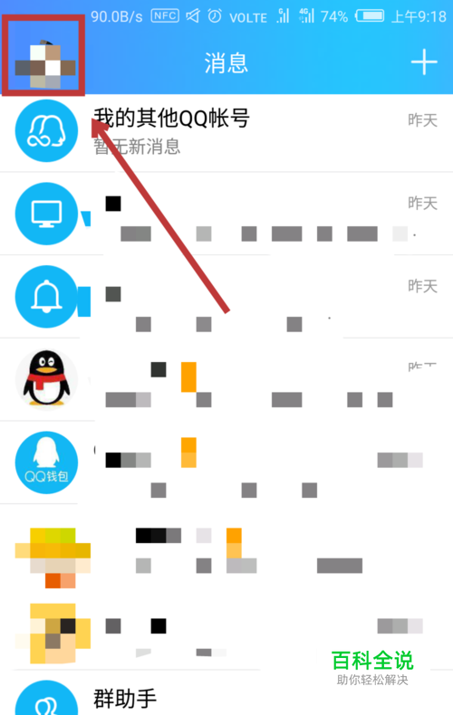 首先我们打开手机版QQ,在界面左上角找到自己的头像,点击进入。