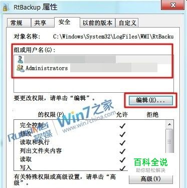 首先解决Win7下Event Log服务4201错误的有效解决方法: 在对Windows7系统进行某些优化或者更改了用户权限之后,会导致Window7系统的“事件查看器”无法启动,显示相关服务没有运行,而对相应服务Windows Event Log进行手动启动的时候,会出现4201错误。针对此错误,网上有很多方法,比如获得某个文件夹的用户权限之后进行删除,或者进入安全模式转移或者删除某个文件夹,甚至借助其他软件。这些方法很多都是从Vista系统延续下来的,针对Windows7系统不一定行之有效,今天就为大家介绍一个简单易行且有效的解决方法。 1、打开资源管理器,找到 C:\windows\system32\logfiles\wmi\RTbackup 这个文件夹,右键调出它的属性,在“安全”选项卡下,“组或用户名”中可能可能会没有SYSTEM这个用户,继续点击“编辑”。