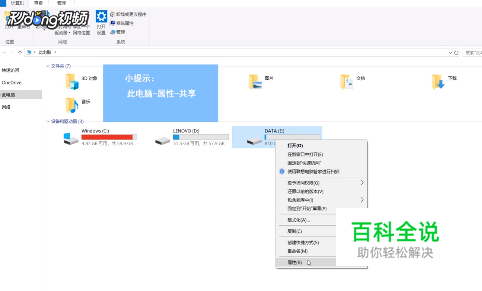 右键单击想要共享的文件,点击“属性”。