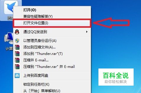 在桌面中找到软件,然后右键。再打开; 打开文件所在位置。