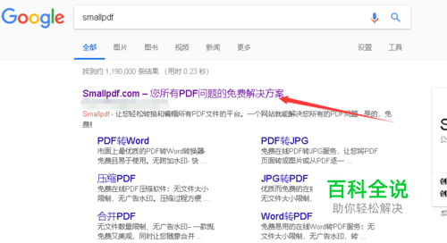 在浏览器中搜索smallpdf搜索,点击搜索结果中的官网网址。