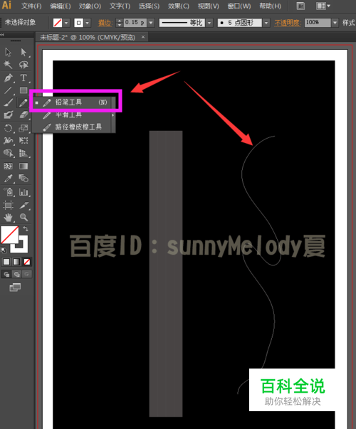 黑色的背景已经制作好了,现在,我们来开始绘制烟雾。选择工具箱中的直线段工具,将填充设置为无,描边设置为白色,描边的粗细为0.15pt,然后按住shift键不放,鼠标点击拖动,可以保证画出一条竖直的线。