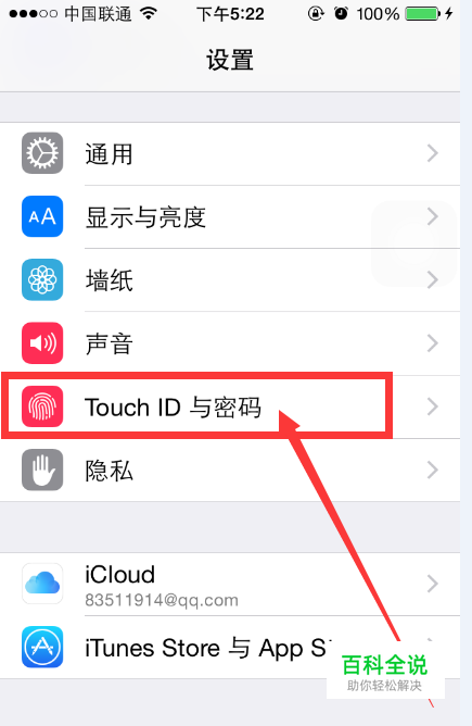 点击“TOUCH ID 与密码”