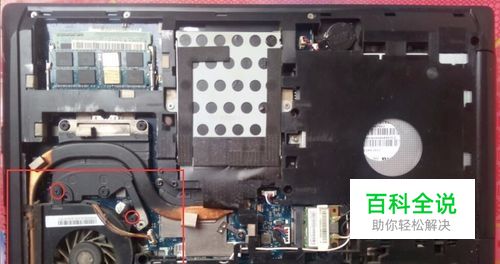 拆开电脑能看到主板和主板上的电脑配件就可以了,接下来就是找到散热器。散热器就是有风扇的小盒子,联想g400这个电脑在左下角。