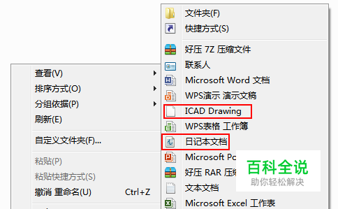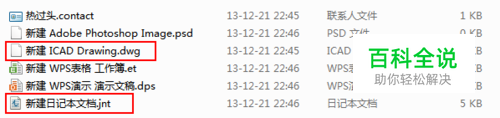 2、随便建立一个文件夹,在里新建自己要删除的菜单项,会出现相应后缀的文件,比如说“新建日记本文档.jnt”;
