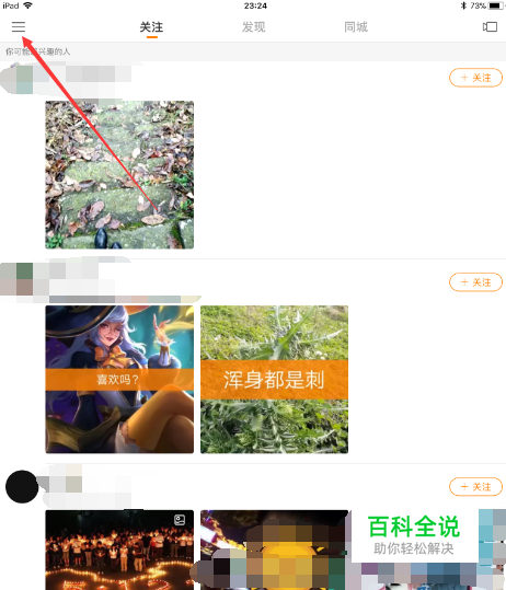 用户想要更换快手的头像,首先点击左上角的【三】。