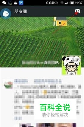 首先肯定是打开朋友圈,按箭头所示点击那个照相机图标