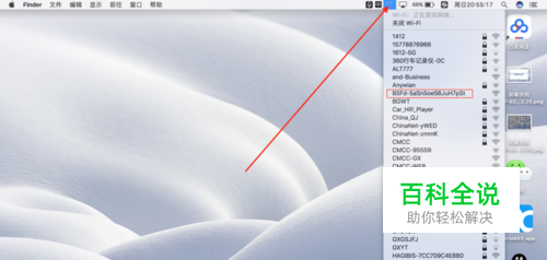 在手机生成WiFi网络后,点击MacBook的WiFi那里,选择B5开头的网络连接上去。