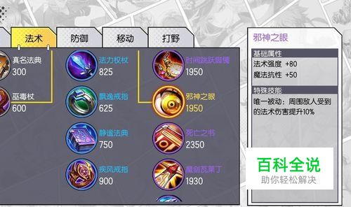 邪神之眼加成了80点法强以及大量法抗,被动可以增加自身10%的法术伤害,加强谦信的技能伤害。