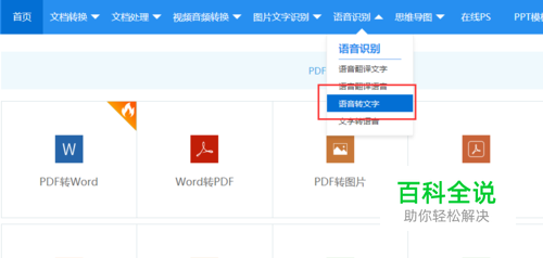 通过搜索进入之后我们可以找到导航栏出的语音识别,然后点击语音转文字;