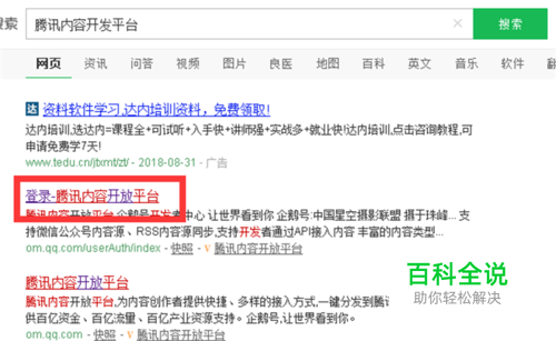 首先搜索『腾讯内容开放平台』,点击进入『登录—腾讯内容开发平台』;