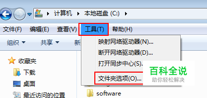 单击菜单栏 工具菜单项,下拉菜单选择单击 文件夹选项,如图: