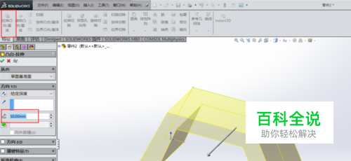 退出草图,选择“草图1”,进行凸台拉伸,设置拉伸长度