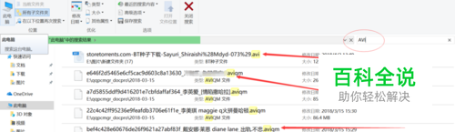 要是不知道名称的情况下,比如我们只知道这个视频是AVI格式的,每个AVI视频后缀都会带上AVI名称,那只要在搜索栏里输入AVI就能找出所有带有这个名称的文件。