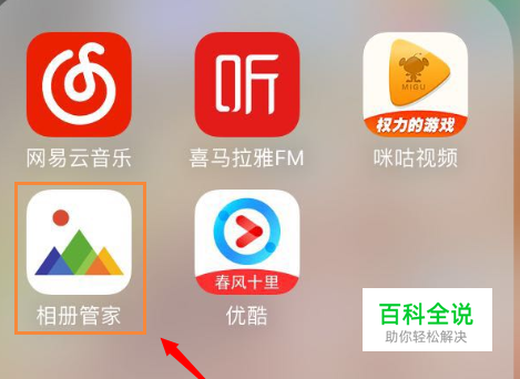 首先我们需要下载一款名为"相册管家"的APP,如图所示;安装以后打开会自动显示目前手机里的所有照片并且将照片分类...