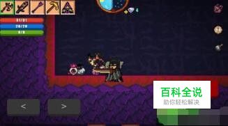 获得足够多的铁块之后,我们就回到像素小镇,跳到熔炉区域,打开背包,将铁矿石放在背包最上面的道具栏,然后点击铁矿石,将它拿在手中,然后对着熔炉点击屏幕右下角的“A”件即可开始制造了。