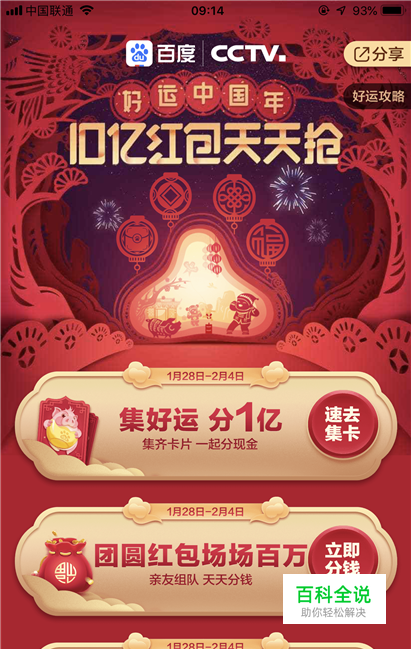 我们打开百度app之后,在首页可以看到一个好运中国年的横幅,点击进入。