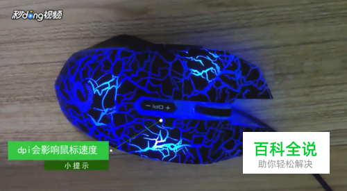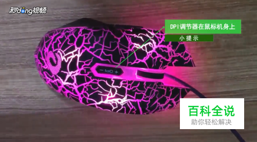 DPI调节键一般在滚轮下方,点击即可更改鼠标速度。