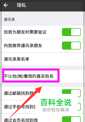 进入隐私界面,点击”不让他看我的真实姓名“。