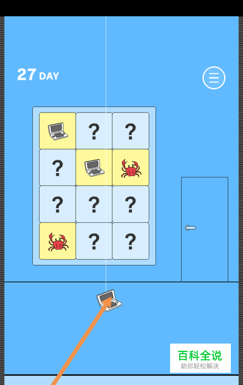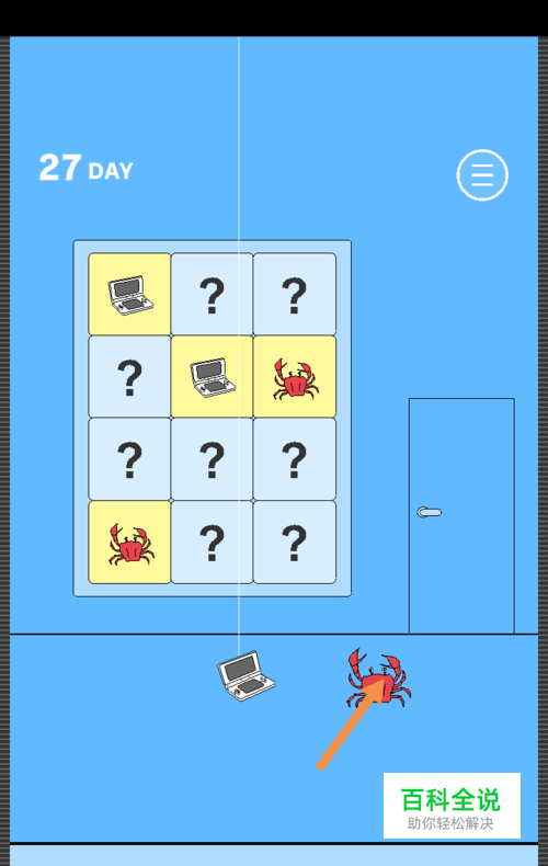 第27关将两张游戏机翻出来,然后将两张螃蟹翻出来。两张螃蟹翻出来后,点击螃蟹。