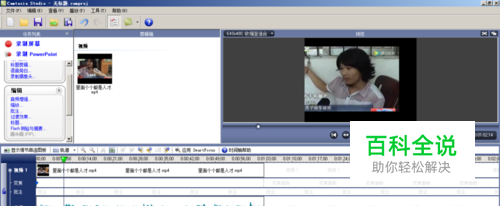 打开Camtasia Studio 6,导入一个带水印的视频,把这个视频拖放到“视频1”轨道上,观察水印的位置