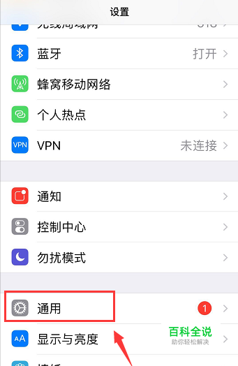 在设置界面,点击通用进入,如下图所示