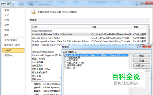 3, 查看EXCEL禁用项目,是否有smartview,有的话就启用