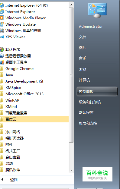 点击“开始”,选择“控制面板”。