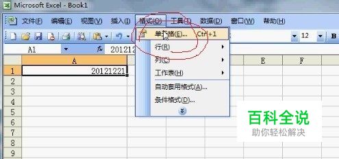 1、选中需要转换的单元格,单击“菜单栏”的“格式”,在下拉菜单中选择“单元格”命令