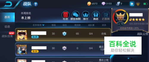 战队信息的首页是战队成员的活跃度,以及右侧的战队名称和公告、战队赛。