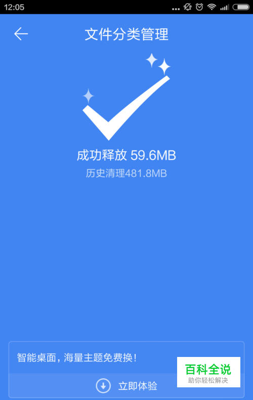 删除成功,页面显示成功释放删除数据占用的内存,点击完成,完成手机瘦身。