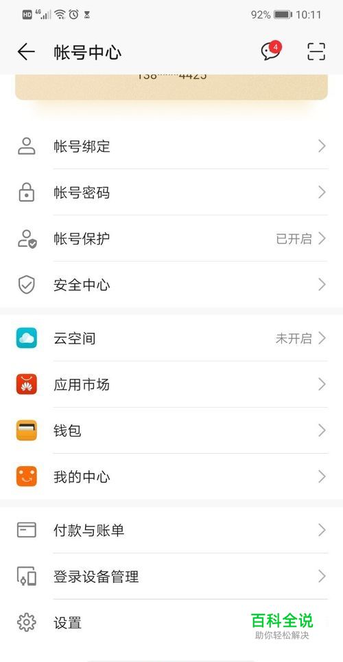 找到华为账号中心的设置,如下图所示:
