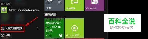 开始菜单中我们点击文件资源管理器打开进入,如图所示