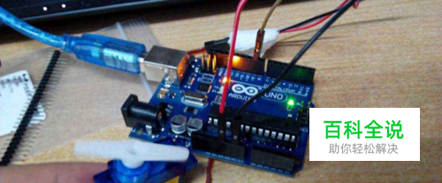 接着就是要辨别舵机的引线,一根是接正极,一根接地,一根为信号线,可以用PWM的IO口相连,如下图所示。