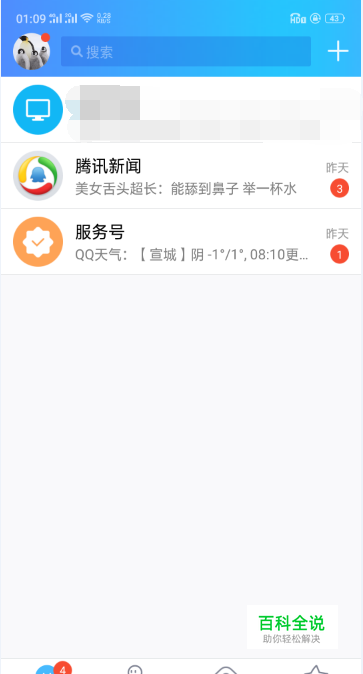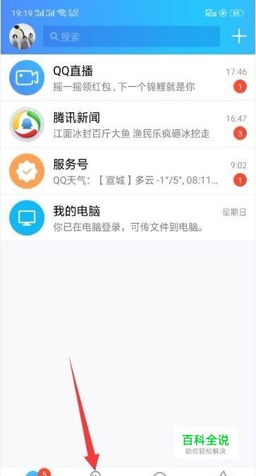打开手机,找到手机QQ,并打开,进入手机QQ主界面