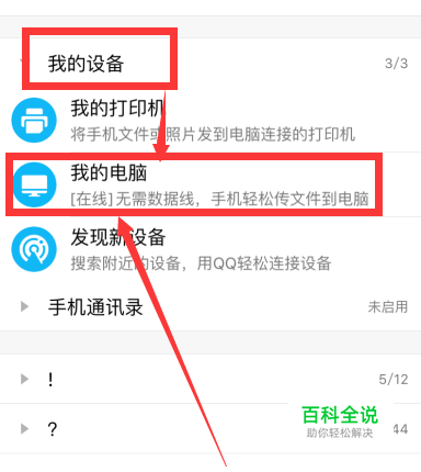 依次执行操作“联系人>我的设备>我的电脑”,然后点击右下角的电脑图标。