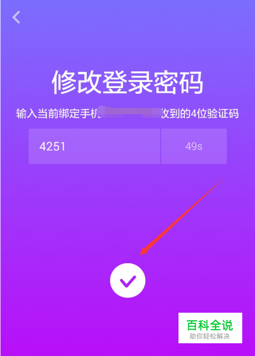 然后输入绑定手机收到的修改登录密码的验证码,然后单击下面的✔,如下图所示。
