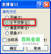 接着点击【全部重排】 在弹出的对话框中选择【水平并排】,可以对并排效果进行设置。