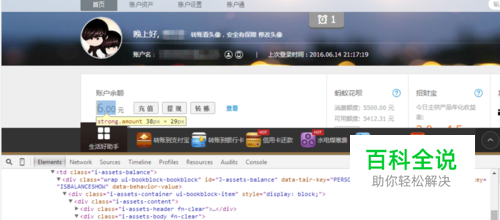 鼠标放在账户余额6元处,单机鼠标右键,然后点击审查元素。
