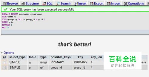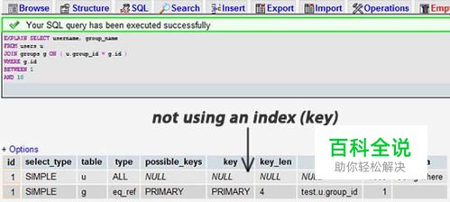 2. 用EXPLAIN使你的SELECT查询更加清晰 使用EXPLAIN关键字是另一个MySQL优化技巧,可以让你了解MySQL正在进行什么样的查询操作,这可以帮助你发现瓶颈的所在,并显示出查询或表结构在哪里出了问题。 EXPLAIN查询的结果,可以告诉你那些索引正在被引用,表是如何被扫描和排序的等等。 实现一个SELECT查询(最好是比较复杂的一个,带joins方式的),在里面添加上你的关键词解释,在这里我们可以使用phpMyAdmin,他会告诉你表中的结果。举例来说,假如当我在执行joins时,正忘记往一个索引中添加列,EXPLAIN能帮助我找到问题的所在。 添加索引到group_id field后