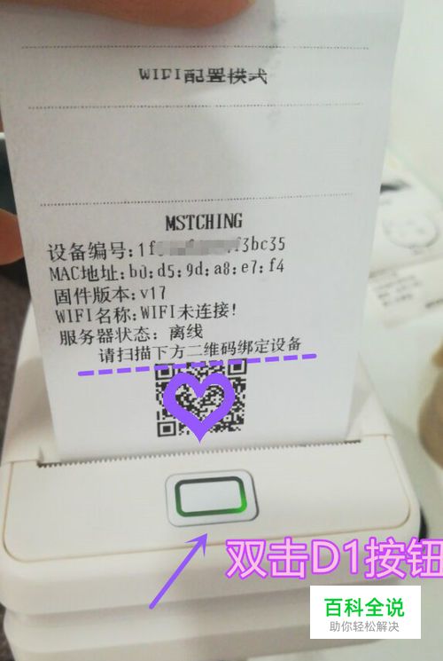双击打印机设备D1开关按钮,获取绑定设备所需的二维码,以及下一步wifi配置需要用到的设备编码。