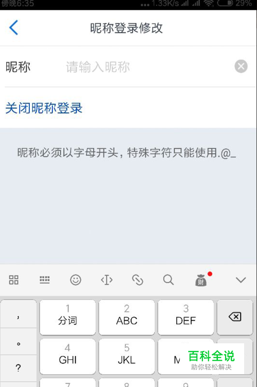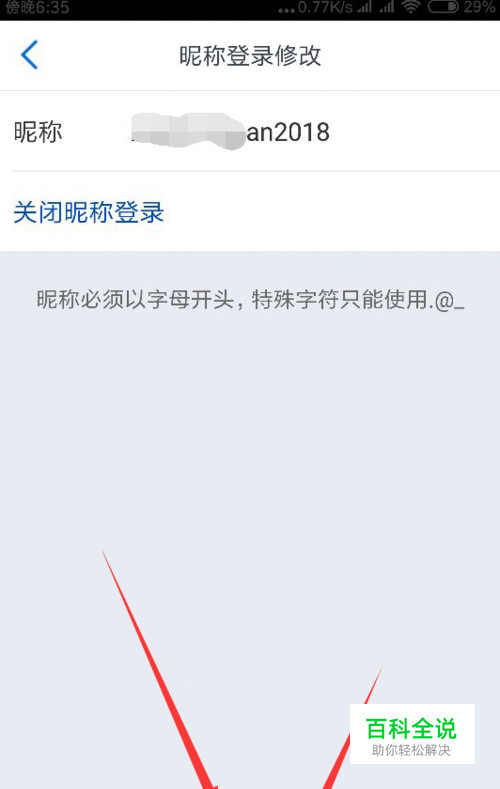 进入昵称登录修改,在这里我们输入要修改的登录昵称,修改好后单击确定按钮,如下图所示。