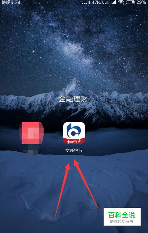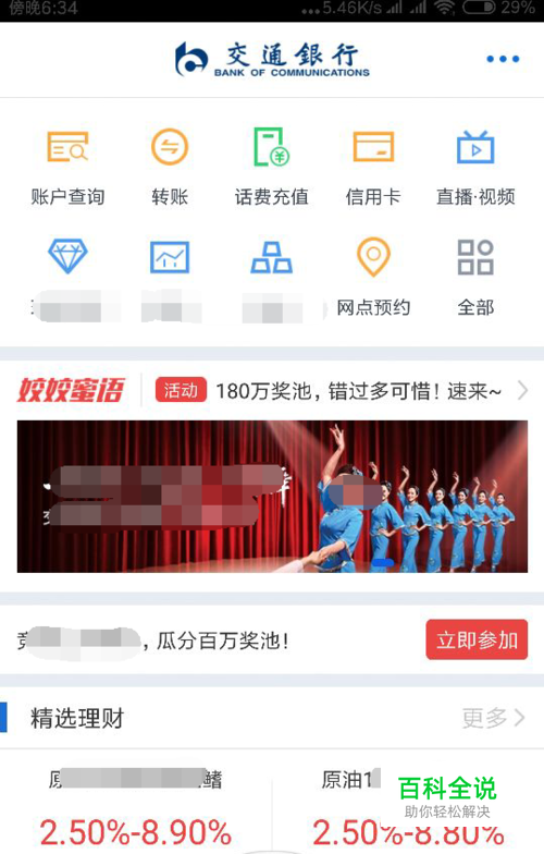 双击打开手机上安装的最新版本的交通银行手机银行,进入主页面,如下图所示,