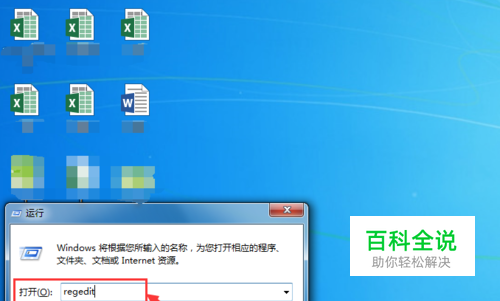 用键盘输入 Win+R 打开“运行”对话框,并在对话框中输入 regedit 点击回车(可能需要管理员权限),如图一