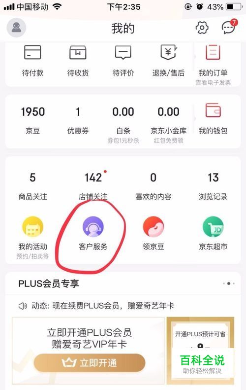 在登录的京东app中找到并点击“客户服务”