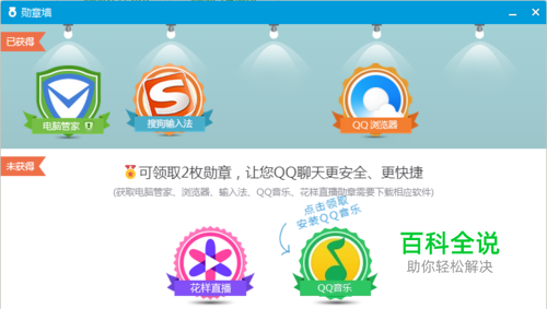 QQ浏览器勋章,这个只需要下载并安装然后在电脑管家里面将QQ浏览器设置为默认浏览器,将IE导航设置为QQ导航即可