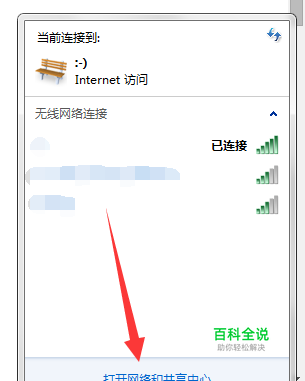 点击屏幕右下角的网络连接的图标打开 网络和共享中心。